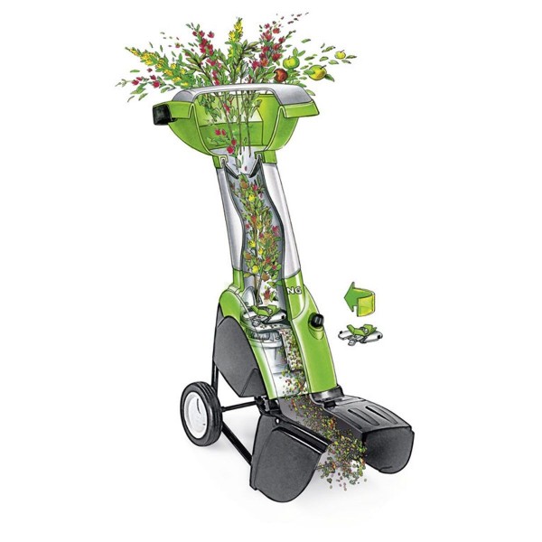 Si le jardinier positionne l’interrupteur de présélection sur le symbole vert, il peut traiter les matériaux souples comme les fruits, les légumes, les feuilles ou les racines. Si le jardinier choisit le symbole de la branche stylisée, il peut broyer les restes d’écorce, les branches touffues, les chutes de haies et d’arbres, ainsi que les branchages résistants. L’interrupteur est également facile à manipuler avec des gants.